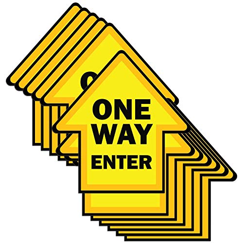 • The stickers are shaped like an arrow, pointing customers in the direction you'd like them to follow when shopping. They feature text letting them know the aisles are one way, and to enter here. Because warning yellow is commonly used for caution, the bright background and darker border are sure to help catch the eye of your customers.